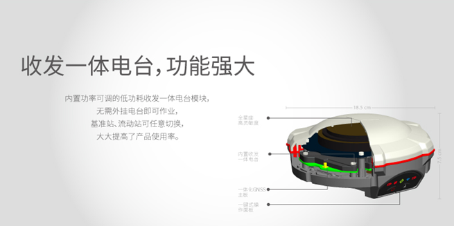 • 收發(fā)一體電臺,功能強大高精度RTK